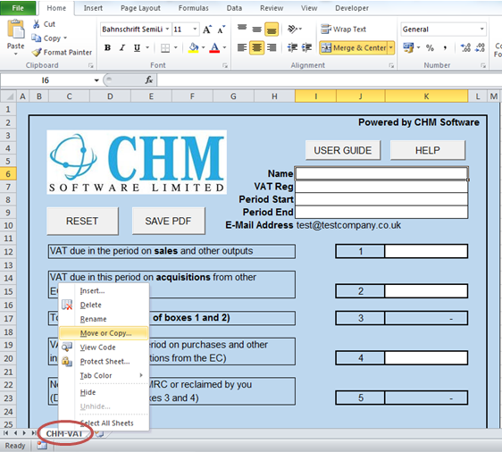 If you wish to embed the Excel MTD VAT Bridging Tool into your own spreadsheet, you will need to open both the CHM MTD VAT Bridge and the spreadsheet you wish to embed the filing tool in.